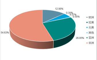 2017年我國(guó)出口至亞洲地區(qū)的茶葉產(chǎn)品數(shù)量占比為26.85%;出口至非洲地區(qū)的茶葉產(chǎn)品數(shù)量占比為54.63%。
