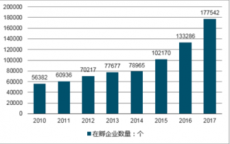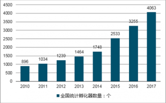 據科技部火炬中心數據,截至2016年底,全國有創業孵化載體7533家,包括孵化器3255家、眾創空間4298家,截至2017年底,全國有創業孵化載體9802家,包括孵化器4063家、眾創空間5739家,科技企業孵化器數量同比增長24.82%。