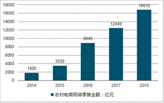 2017年農(nóng)村網(wǎng)絡(luò)零售額達到12448.8億元人民幣,同比增長39.1%。預(yù)計2019年農(nóng)村網(wǎng)絡(luò)零售額將突破15000億人民幣,漲幅或超過20%。