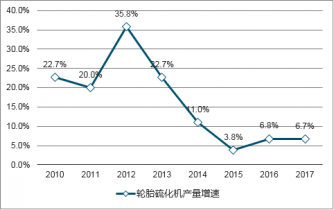 2010-2017年我國輪胎硫化機產量增速