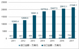 2011-2017年我國(guó)假牙進(jìn)出口金額統(tǒng)計(jì)
