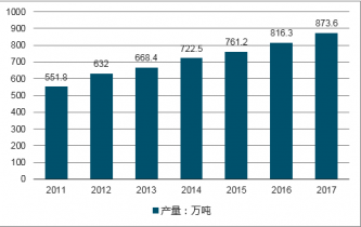 近年來(lái),我國(guó)餅干行業(yè)一直保持快速發(fā)展勢(shì)頭,產(chǎn)量不斷增加。數(shù)據(jù)顯示,2011年我國(guó)餅干產(chǎn)量為551.8萬(wàn)噸,2016年為816.3萬(wàn)噸,而2017年則達(dá)到873.6萬(wàn)噸,同比增長(zhǎng)7.02%。