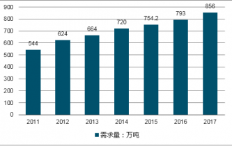 2011-2017中國(guó)餅干行業(yè)消費(fèi)量情況