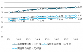 2011-2018年中國(guó)面粉價(jià)格行情走勢(shì)圖