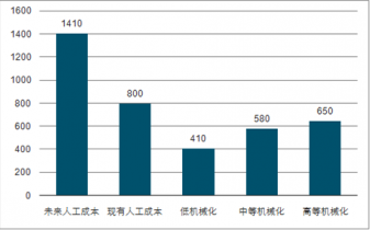 機械化作業成本降低明顯(萬元/百萬m2)圖