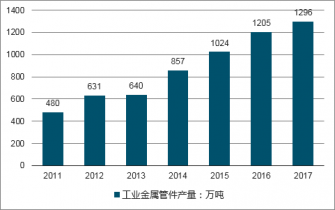 2011-2017年中國工業(yè)金屬管件行業(yè)產(chǎn)量情況