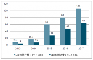 2013-2017LED照明產(chǎn)量銷量 億只(套)