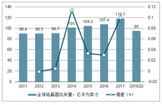 2017年全球硅晶圓(含磊晶硅晶圓)出貨面積連續(xù)四年打破歷史紀(jì)錄,連續(xù)5年維持增長,達(dá)到118.10億平方英吋,較2016年增長9.98%。此外,由于下游需求旺盛,廠家持續(xù)擴(kuò)大產(chǎn)能,2018年前3季度全球硅晶圓出貨面積達(dá)到95.03億平方英寸,再創(chuàng)歷史新高。 2018-2021年全球硅晶圓片出貨量的預(yù)測,2018年硅晶圓片出貨量將達(dá)到124.45億平方英;同時,增長勢頭將延續(xù)到2021年,即未來幾年全球硅晶圓市場將持續(xù)強(qiáng)勁。