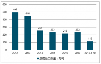 2012-2018年10月全國廢鋼進口量走勢圖