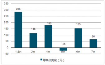 2019年空調(diào)月度零售均價變化情況圖