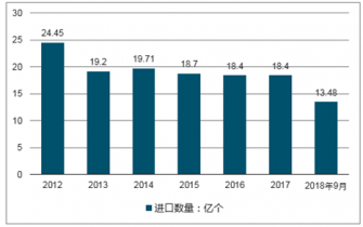 近年我國(guó)蓄電池進(jìn)口數(shù)量呈波動(dòng)下降趨勢(shì),2017年、2019年1-9月我國(guó)蓄電池進(jìn)口數(shù)量分別為18.10億個(gè)、13.48億個(gè),2012-2018年9月我國(guó)蓄電池進(jìn)口數(shù)量分析如下:
