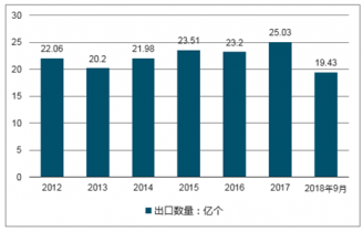 近年我國(guó)蓄電池出口數(shù)量呈波動(dòng)趨勢(shì),2017年、2019年1-9月我國(guó)蓄電池出口數(shù)量分別為25.03億個(gè)、19.43億個(gè),2012-2018年9月我國(guó)蓄電池出口數(shù)量分析如下: