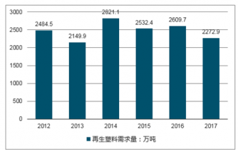 2012-2017年全國再生塑料需求量走勢圖