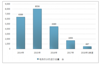 2016年我國電熱飲水機進口總量4489臺,2017年進口總量1694臺;2018年1季度進口總量487臺。