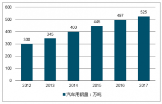 2012-2017年我國(guó)汽車用鋁需求總量走勢(shì)圖