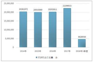 2016年我國對講機出口總額465088034美元,2017年出口總額524800832美元;2018年1季度出口總額138426078美元。