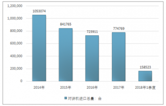 2016年我國對講機進口總額87665511美元,2017年進口總額87159827美元;2018年1季度進口總額27739833美元。