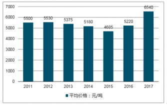 前幾年國內碳酸二甲酯市場受國家環保政策、原材料PO價格等因素影響,價格波動明顯,這使得部分高成本裝置利潤波動較大,導致行業整體產能利用率長期位于50%上下,在化工行業中屬于較低的水平。2017年我國碳酸二甲酯平均價格約6540元/噸,同比2016年的5220元/噸上漲了1320元/噸。