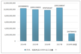 2016年我國開關,線路電壓≤1000V出口總量9787535167個,2017年出口總量10551368047個;2018年1季度出口總量2367994415個。