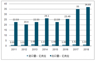 2011-2018年中國人造金剛石行業進出口情況