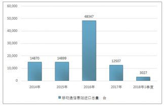 2016年我國移動通信基站進口總量48347臺,2017年進口總量12507臺;2018年1季度進口總量3027臺。