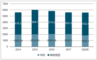 2019年,國內(nèi)中厚板總產(chǎn)量達(dá)5580.7萬噸,產(chǎn)量占比前三的區(qū)域分別為華東1858萬噸、華北1669.3萬噸、中南999.3萬噸,華東地區(qū)中厚板產(chǎn)量占比在30%以上。2015年,全國中厚板產(chǎn)量開始下降;2016年,華東地區(qū)中厚板產(chǎn)量首次下降,但降幅不大,2019年延續(xù)下降趨勢,同比下降達(dá)9.4%。