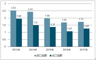 2013-2017年全球銻礦及其精礦進(jìn)出口貿(mào)易總額