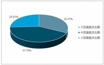 根據測算,2017年全球大型臭氧發生器消費金額占整體市場規模為32.41%,中型臭氧發生器占41.78%,小型臭氧發生器市場規模占25.81%。