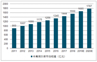2011-2020E中高端女裝市場(chǎng)規(guī)模