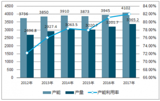 2012-2017年中國燒堿行業(yè)產(chǎn)能及產(chǎn)能利用率情況