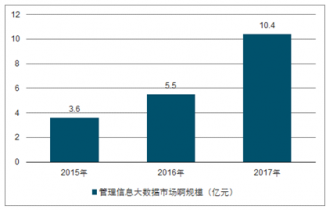 2016年我國管理信息大數(shù)據(jù)市場規(guī)模5.5億元,2017年我國管理信息大數(shù)據(jù)市場規(guī)模增長至10.4億元。