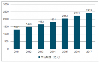 近年來,隨著我國居民消費水平的提高和生活方式的轉變,尤其是連鎖經營方式的推行,鹵制休閑鹵制食品行業得到了快速發展,市場規模保持快速增長態勢。2011年我國休閑鹵制食品的市場規模為1301億元,2006年增長至2231億元,6年復合增長率11%。2017年我國休閑鹵制食品的市場規模為2419億元。