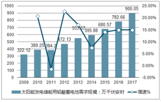 2009-2017年太陽能發(fā)電儲能用鉛酸蓄電池需求規(guī)模走勢
