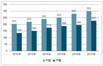2012-2017年中國白炭黑行業(yè)產(chǎn)能及產(chǎn)量情況