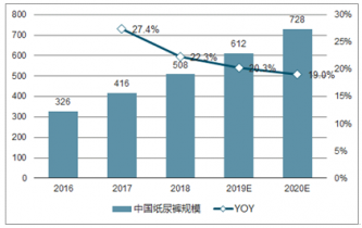 第.一節(jié) 2016-2019年嬰兒紙尿褲市場(chǎng)規(guī)模分析