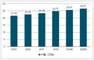 伴隨著我國狗糧行業(yè)的進(jìn)一步發(fā)展,預(yù)計未來幾年,狗糧產(chǎn)量將呈現(xiàn)出逐年增長態(tài)勢,到2020年狗糧產(chǎn)量將達(dá)到26.57萬噸。