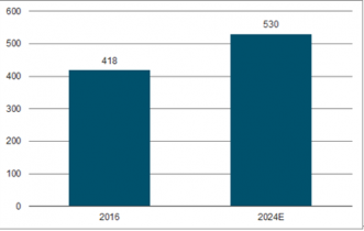 預(yù)測全球骨科植入類耗材 2024 年預(yù)計將達(dá)到 530 億元,估計2016-2024年復(fù)合增速約為 3%。全球骨科耗材市場集中,前五大企業(yè)強(qiáng)生、捷邁、史賽克、美敦力和施樂輝占全球市場份額合計約為 62%。
