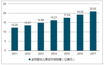 2011-2017年全球嬰幼兒果泥市場規(guī)模走勢圖