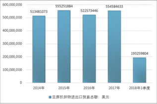 2016年我國亞麻機織物進出口貿易總額522573446美元,2017年進出口貿易總額554584633美元;2018年1季度進出口貿易總額193259804美元。