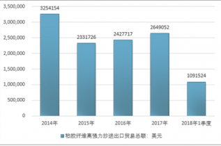 2016年我國粘膠纖維高強力紗進出口貿易總額2427717美元,2017年進出口貿易總額2649052美元;2018年1季度進出口貿易總額1091524美元。