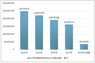 2016年我國化纖制繩絨織物進出口貿易總額190705588美元,2017年進出口貿易總額161497711美元;2018年1季度進出口貿易總額35113392美元。