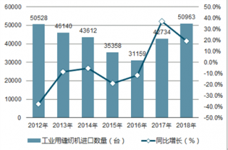 2018年1-12月中國工業用縫紉機進口數量為50963臺,同比增長19.3%;2018年1-12月中國工業用縫紉機進口金額為147459千美元,同比增長8.6%。