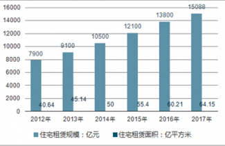 2012-2017年中國(guó)住宅租賃行業(yè)市場(chǎng)規(guī)模及租賃面積情況