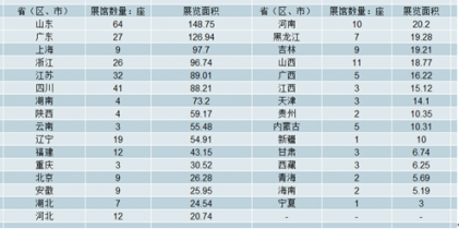 2017年各省(區、市)投入使用展覽場館面積情況