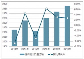 2013-2018年中國(guó)洗衣機(jī)出口量及增長(zhǎng)走勢(shì)