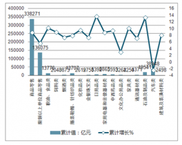 2019年1-12月中國商品零售額及同比增速