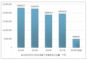 2016年我國未經任何加工的非溶聚丁苯橡膠進口總量18890372千克,2017年進口總量19530410千克;2018年1季度進口總量4899546千克。