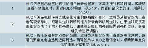 駕駛員使用HUD,可以減少視線轉移的時間、視線轉移帶來的眼睛瞳孔變化、眼睛聚集點的變化,使駕駛員的視線和注意力更少的偏離道路,提升行車安全性。
