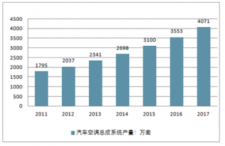 2011-2017年國內(nèi)汽車空調(diào)總成系統(tǒng)產(chǎn)量(單位:萬套)