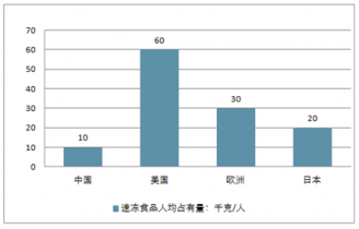 2017年中國與國外發(fā)達國家速凍食品人均占有量差距